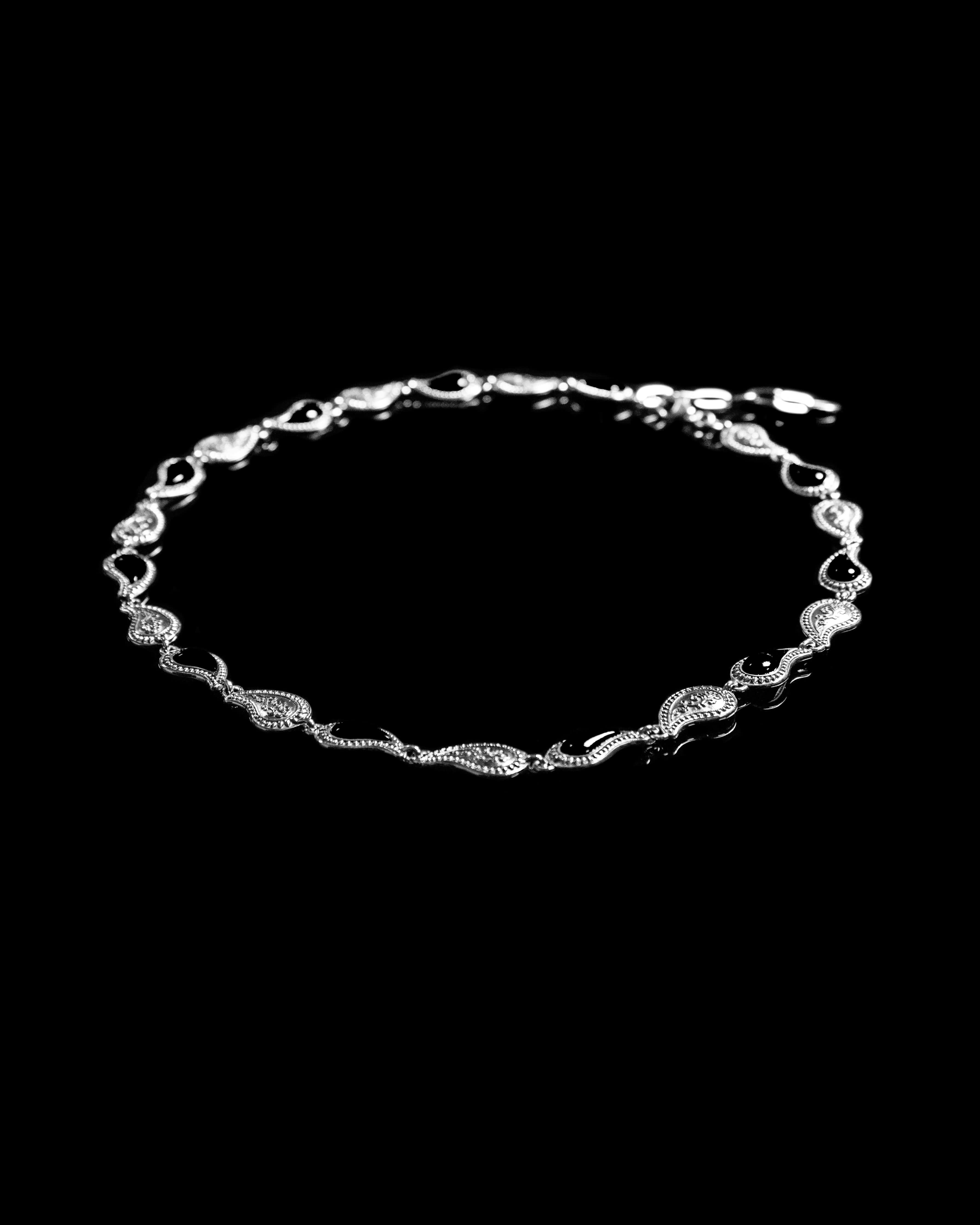 Crafted from solid 925 sterling silver, the Paisley Repeating Inlay Black Onyx Necklace offers a bold new take on our signature Paisley collection. Each link is hand-carved and set with polished black onyx inlays, giving the piece a sleek, powerful presence. Designed with a custom clasp and adjustable length from 18–20", this necklace is versatile enough to stand alone or layer seamlessly with your other FTWS pieces.