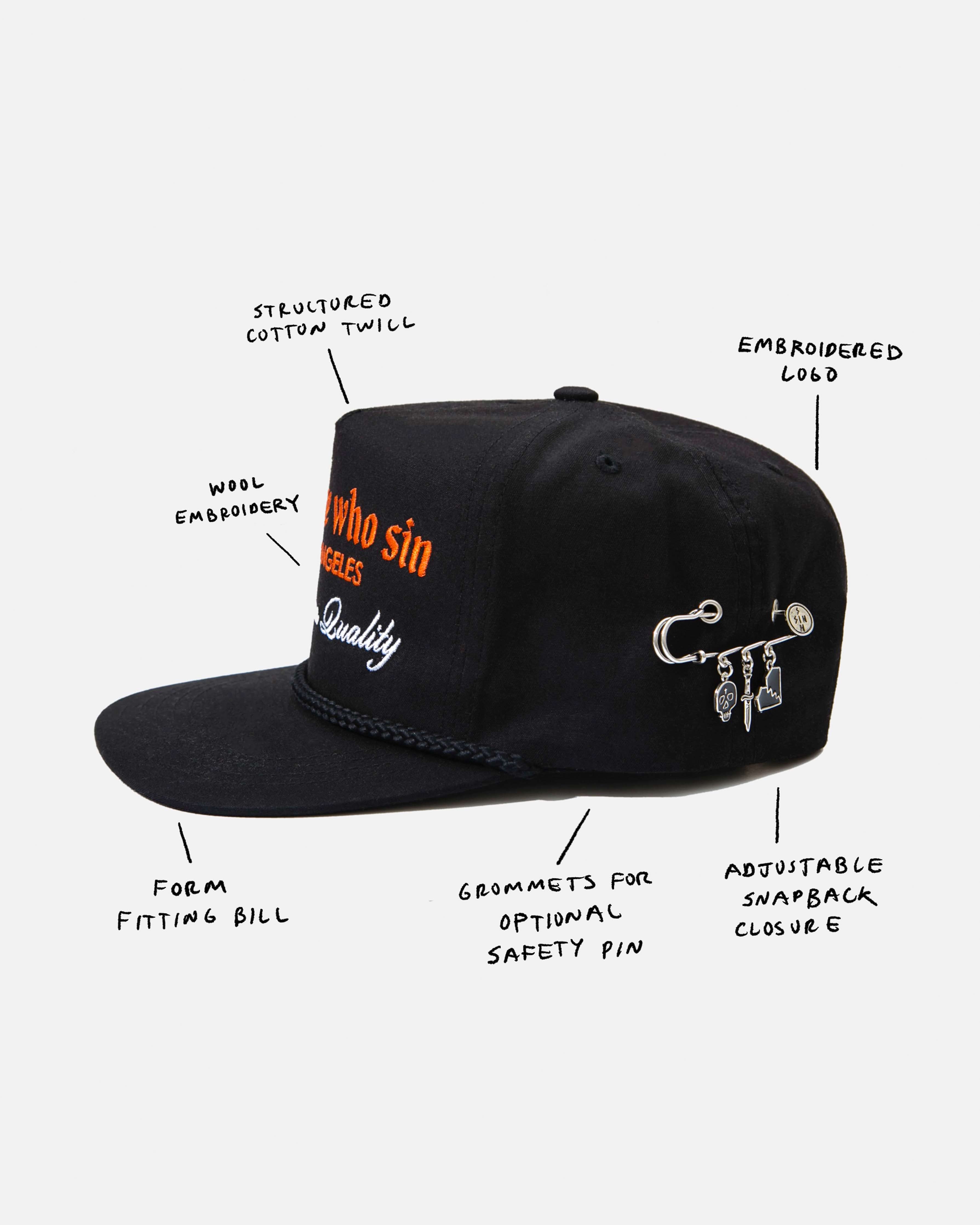 The American Quality Hat features our beloved staple trucker fit with a 3.75" crown height, adjustable snapback closure, and signature grommets on the side designed to hold one of our iconic safety pins. Unlike most, we don’t use a blank, every FTWS hat is cut and sewn from scratch using premium, durable materials built to stand the test of time. Take your pick between our classic black colorway or our new Camo version, but you probably need both.