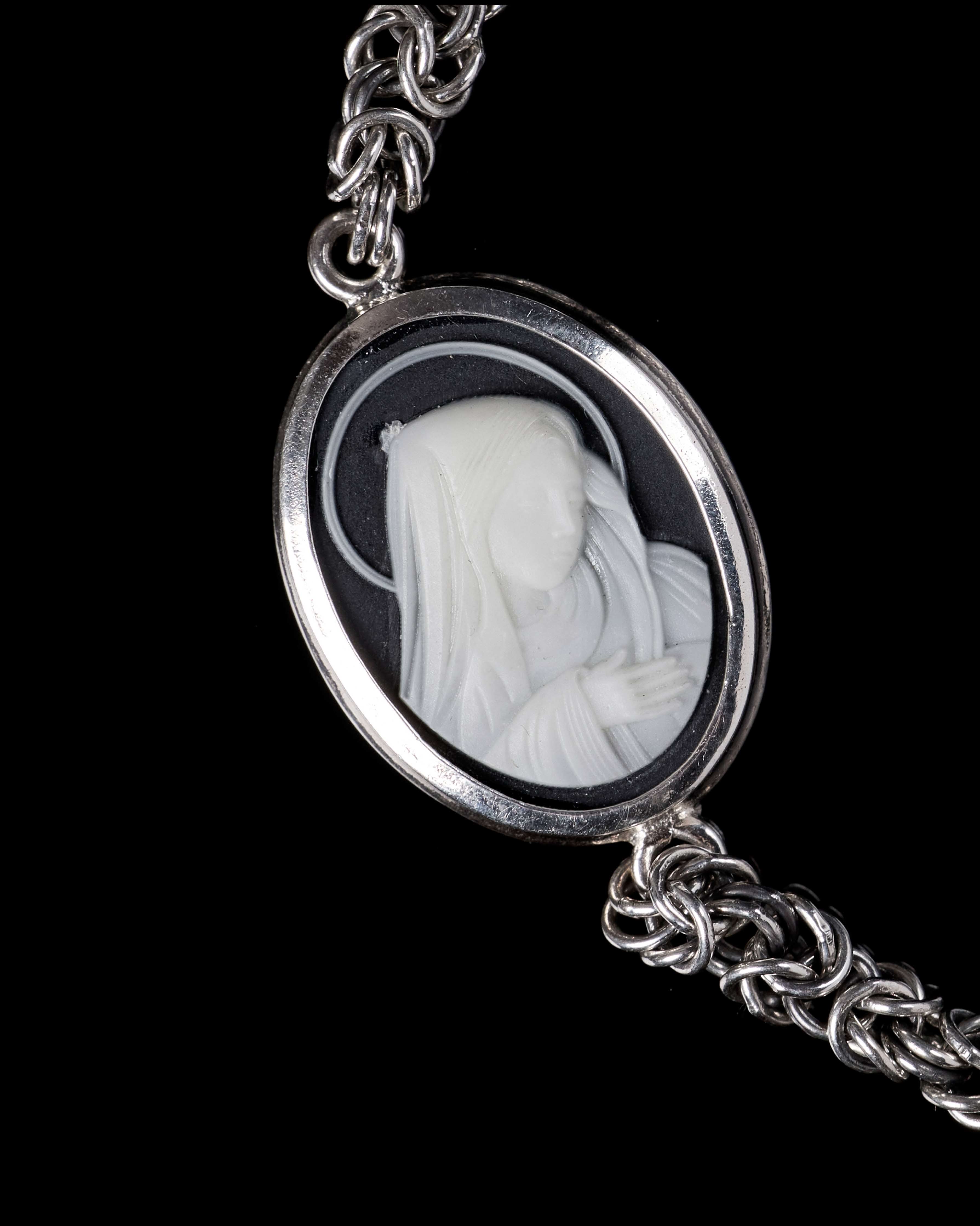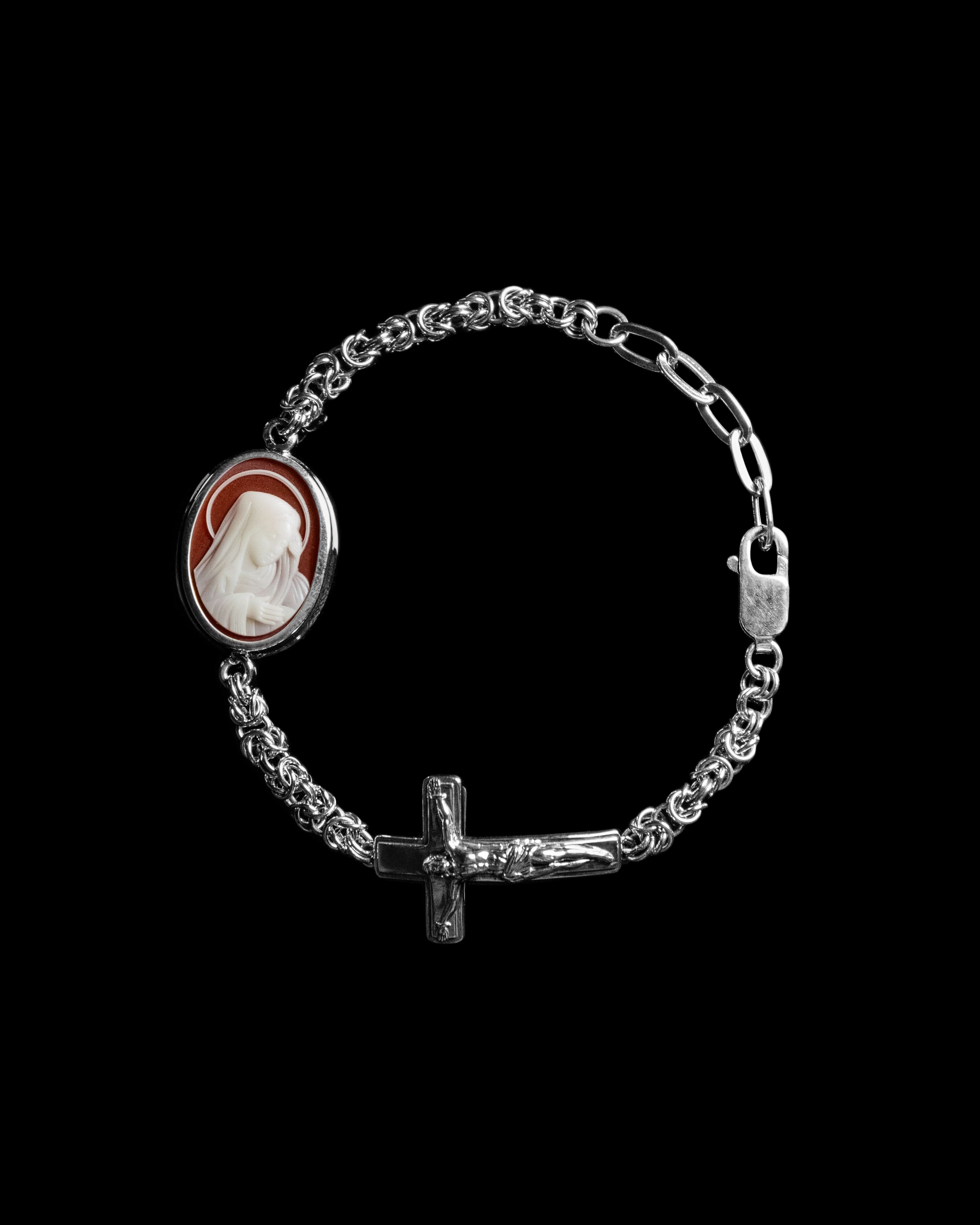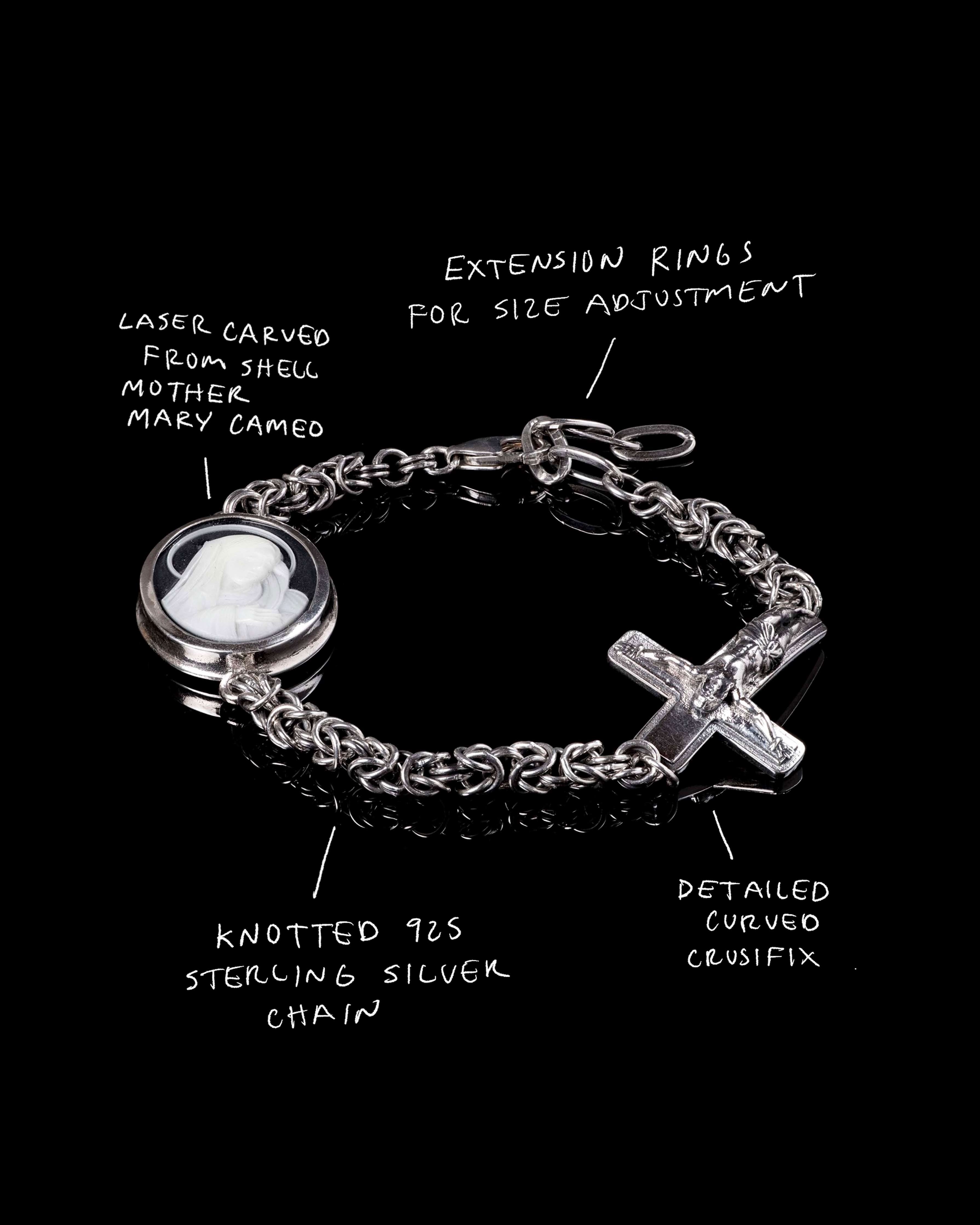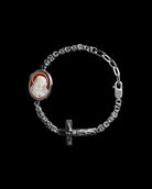 The Cameo Bracelet is a refined blend of Renaissance-inspired artistry and modern craftsmanship. Made from 925 sterling silver, it features a laser-carved shell cameo, carefully set in its frame and secured by hand-bent silver claws. With an adjustable 7-8” length, this piece offers a comfortable and versatile fit for any wardrobe. Designed for durability and elegance, the Cameo Bracelet merges luxury materials with expert detailing—delivering a timeless statement at an accessible price.