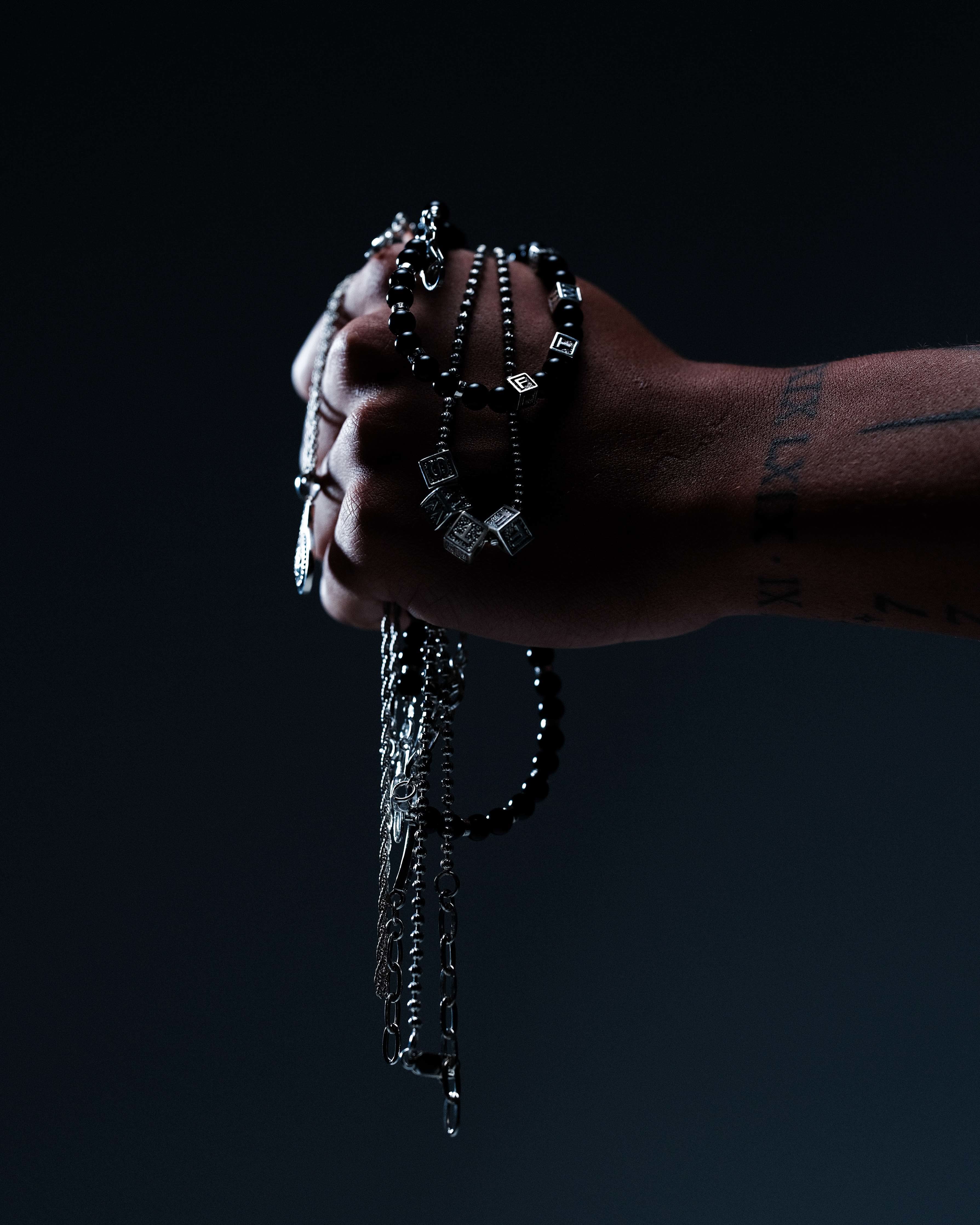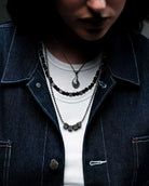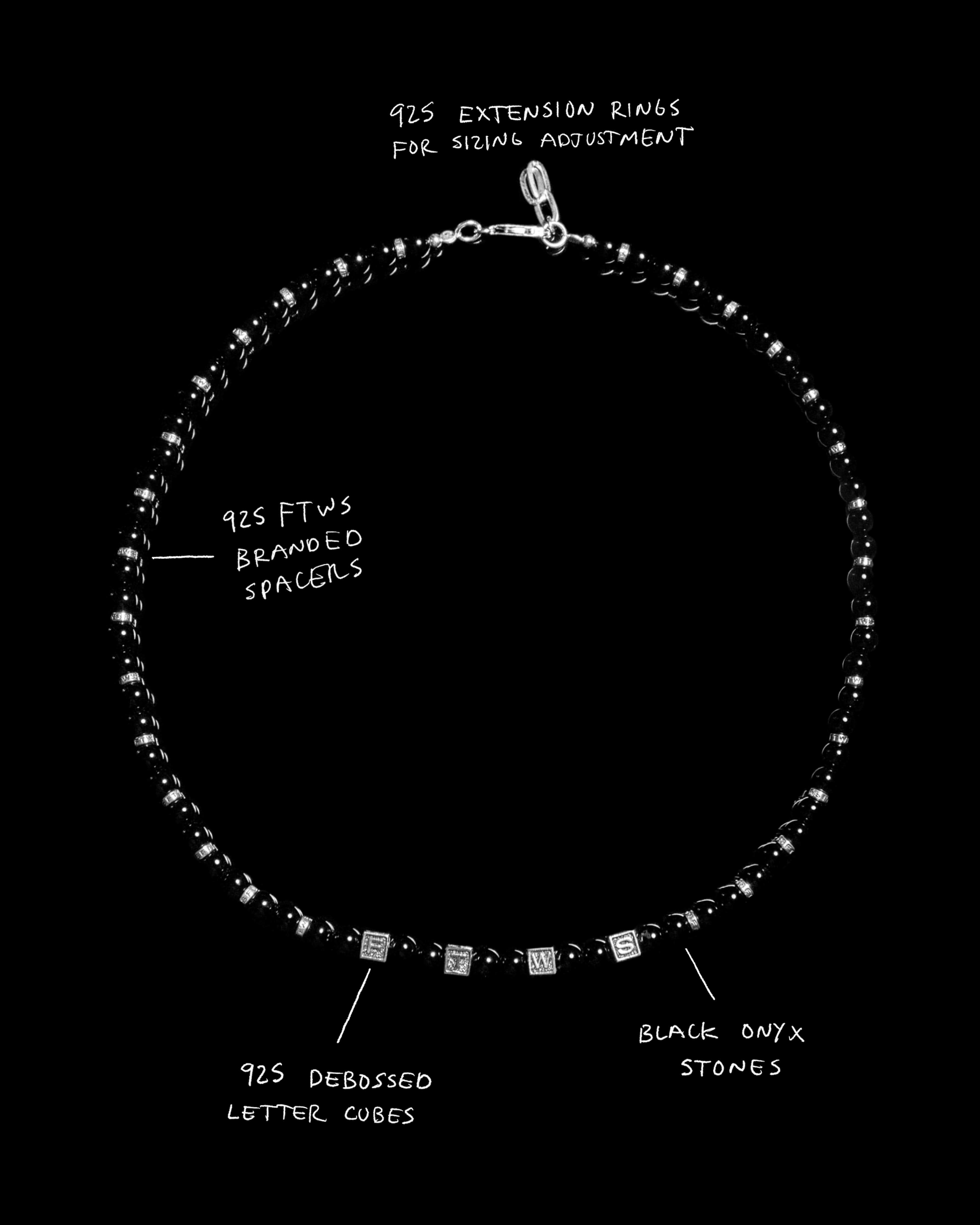 The Block Onyx Necklace is a bold fusion of strength and sophistication. Crafted from precisely cut onyx stone and 925 sterling silver, this piece stands out as a statement on its own or layers seamlessly with other FTWS sterling necklaces. Each onyx stone is carefully strung and secured with a soldered clamp, ensuring exceptional quality and durability. With an adjustable length of 19.25 - 20.25", it offers a tailored fit for ultimate comfort. Designed for those who appreciate both edge and elegance, this necklace is the perfect balance of refined craftsmanship and timeless style.