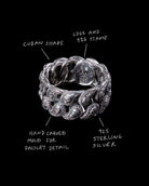 The Paisley Cuban Ring is a bold fusion of intricate detail and timeless craftsmanship. Hand-carved from wax to ensure every paisley pattern is perfectly defined, this ring is then cast in 925 sterling silver for a striking finish. Its unique design makes it a standout statement piece while remaining versatile enough for everyday wear. A perfect balance of edge and sophistication, the Paisley Cuban Ring is a testament to expert artistry and bold style.