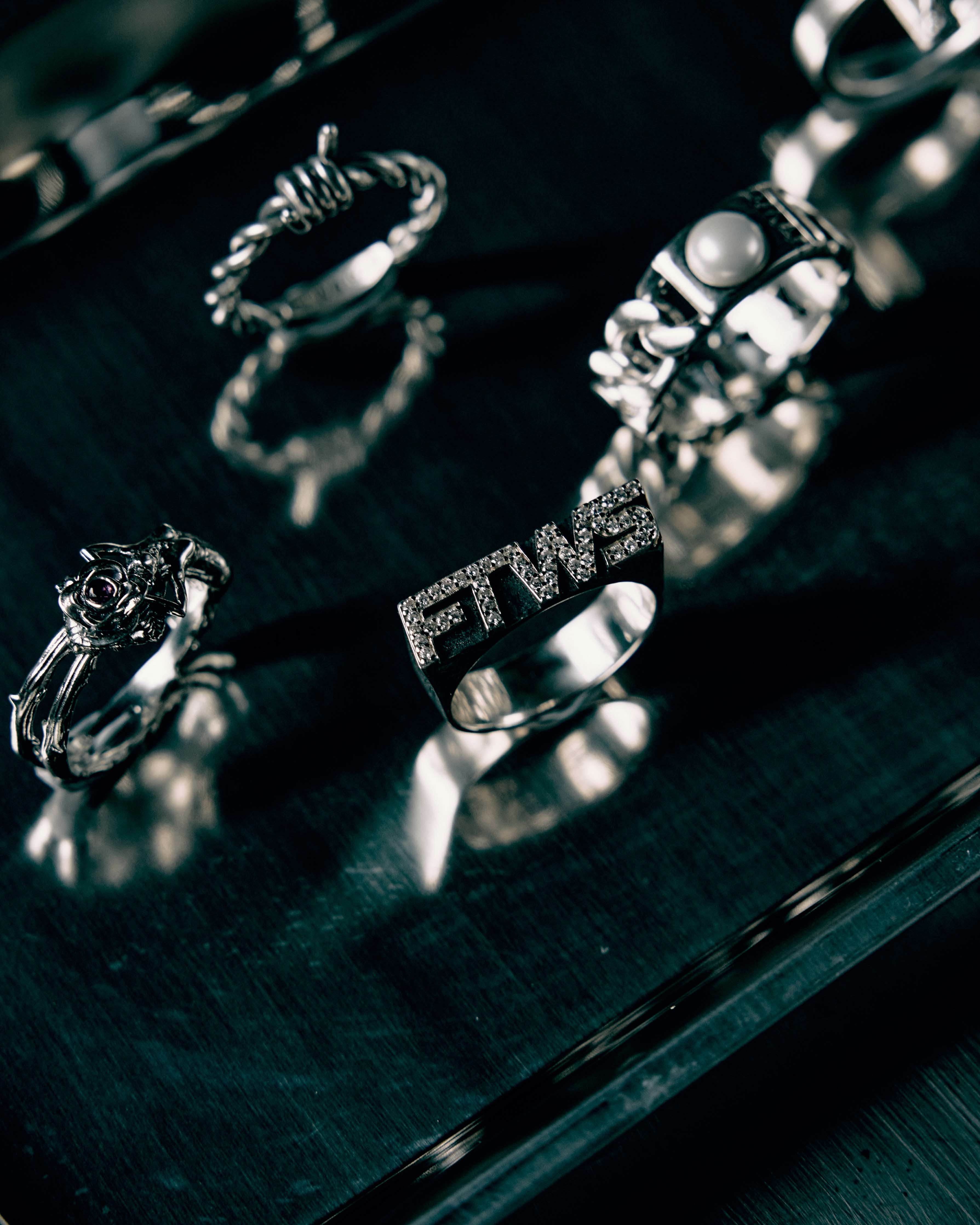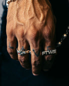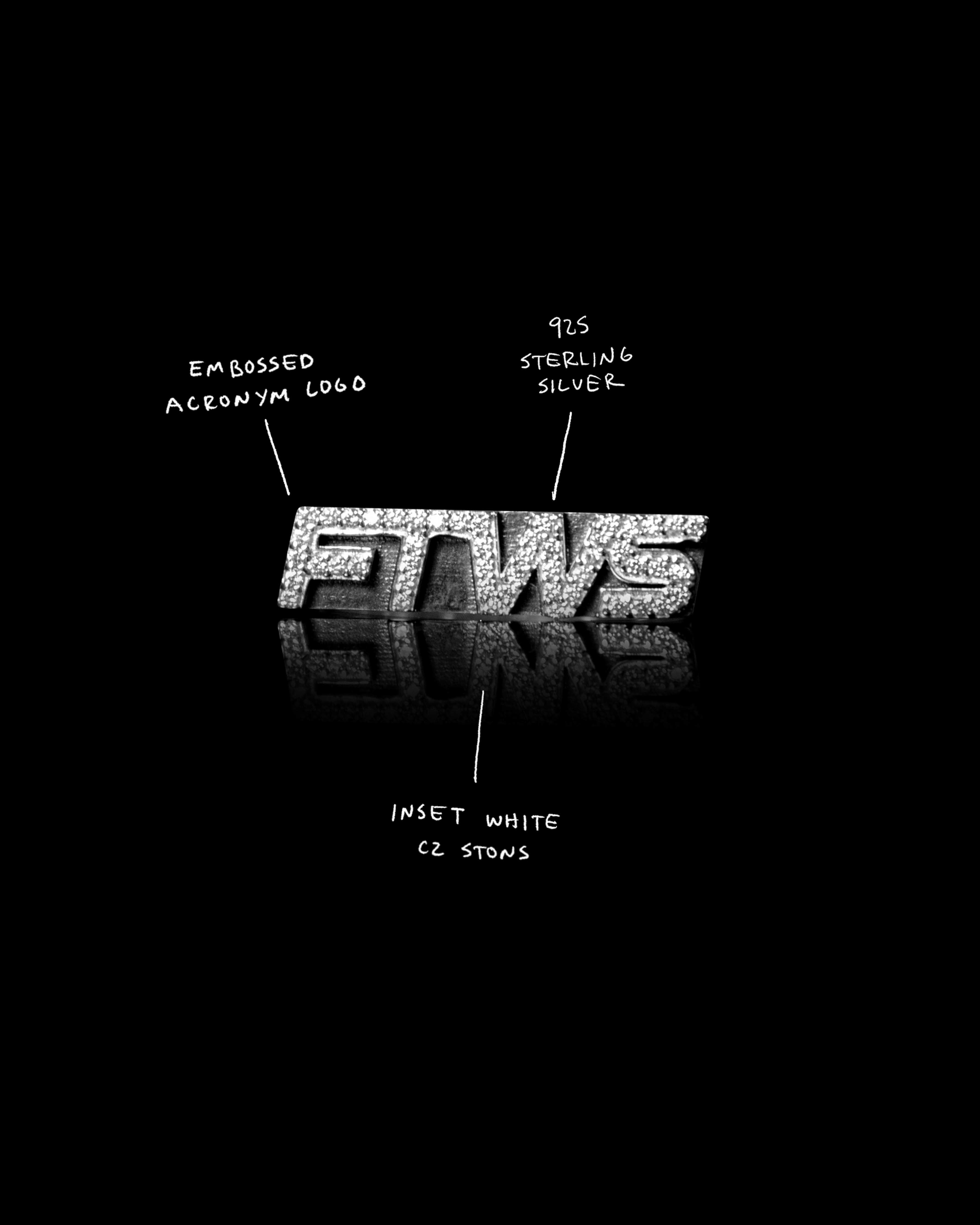 The Speed Ring is a striking mix of bold design and refined elegance. Meticulously crafted from 925 sterling silver, this ring boldly displays the FTWS acronym in a way that commands attention. Its powerful presence is elevated when adding hand-set stones that adorn the face of the letters, adding a layer of complexity and luxury. A true statement piece on its own, this ring sparks conversation and effortlessly elevates any collection. A must-have for any serious jewelry enthusiast, the Speed Ring is a perfect blend of design, craftsmanship, and luxury.