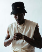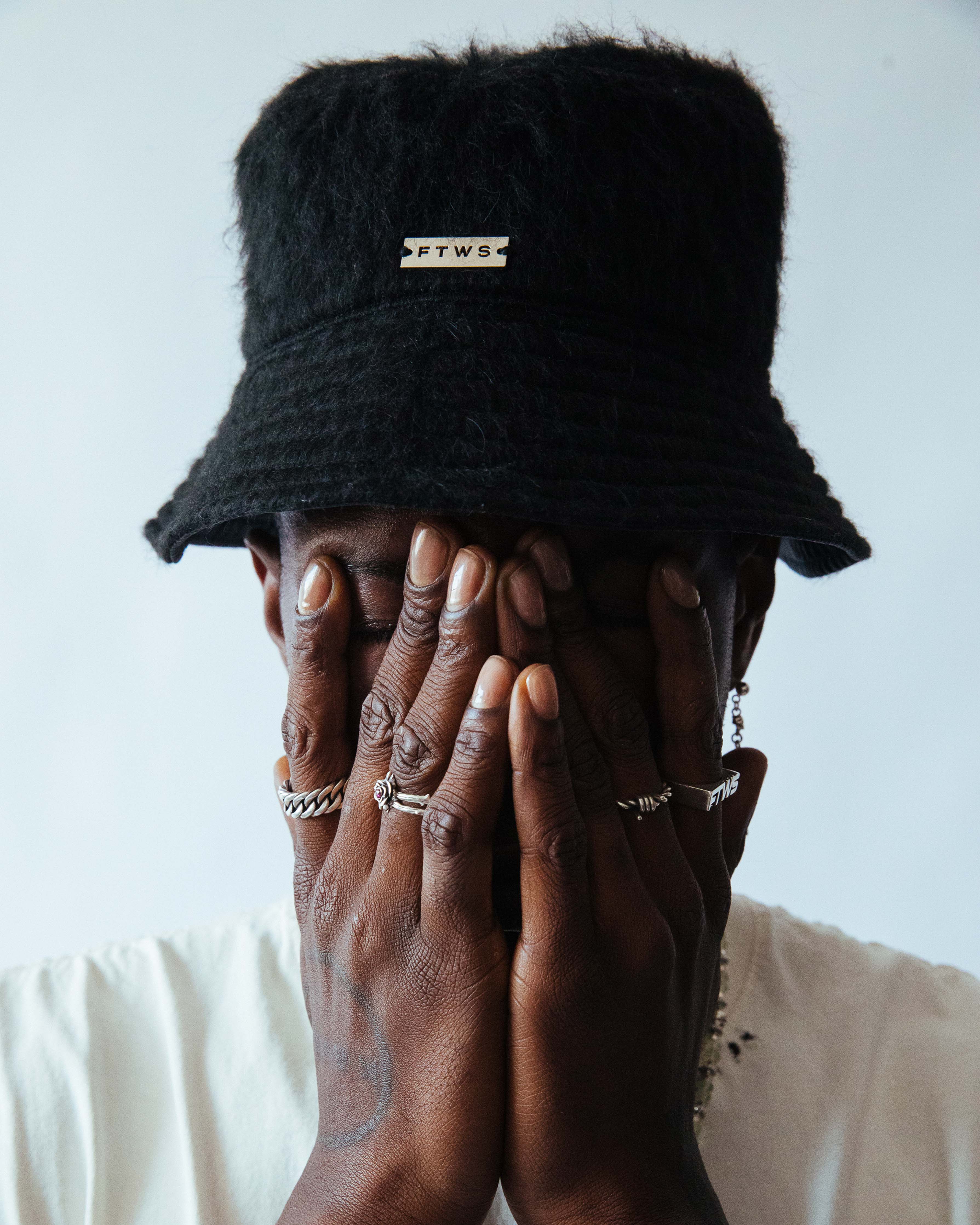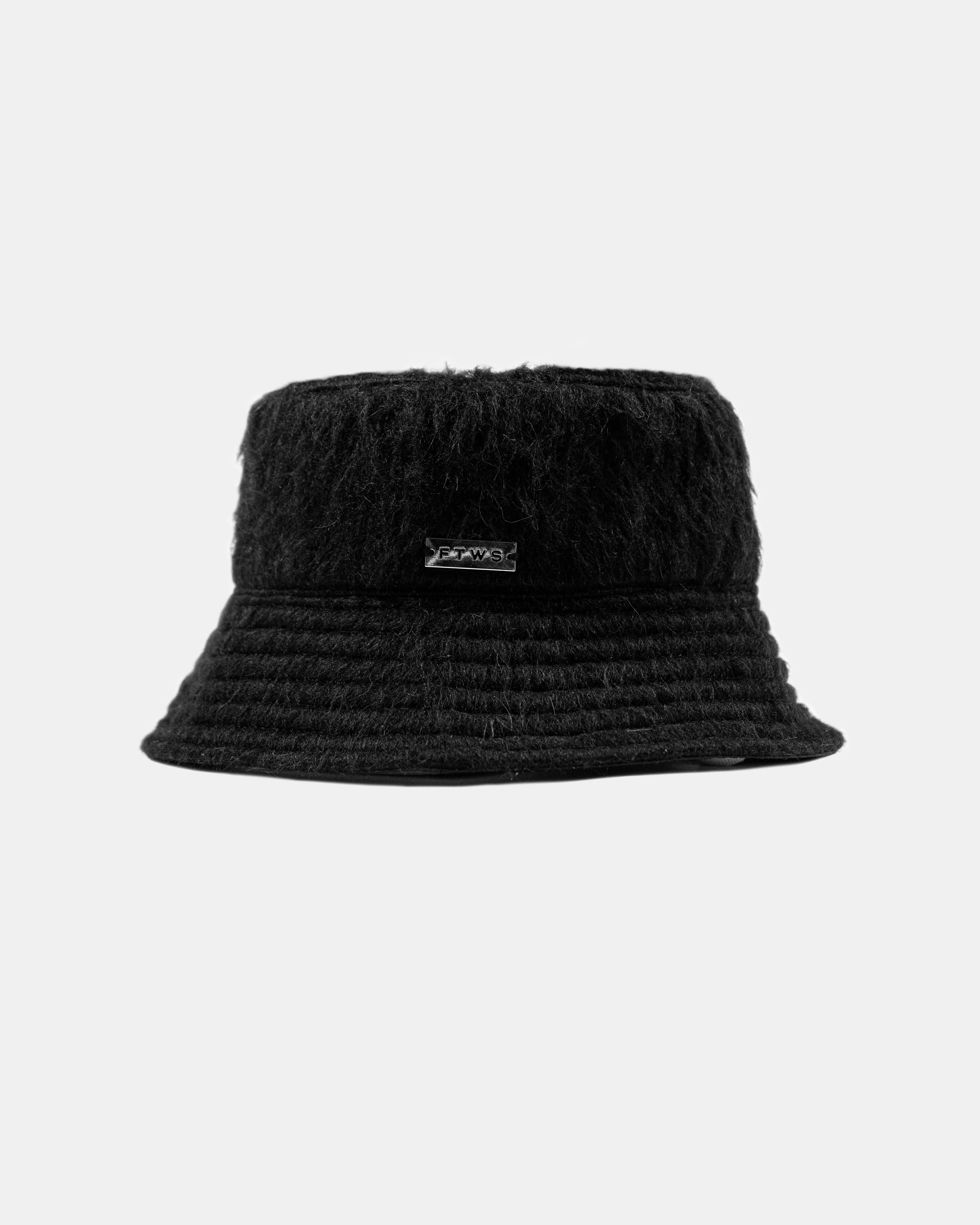 Top off your fit with a standout statement piece. Our Mohair Bucket Hat. Designed for both style and comfort, it features a luxurious satin lining and a sleek metal tab label sewn on the outside for a premium touch. Available in two sizes, S-M and L-XL, this hat brings a unique edge to any look. Whether you're elevating a laid-back fit or making a bold move, this mohair bucket hat is the perfect finishing touch.