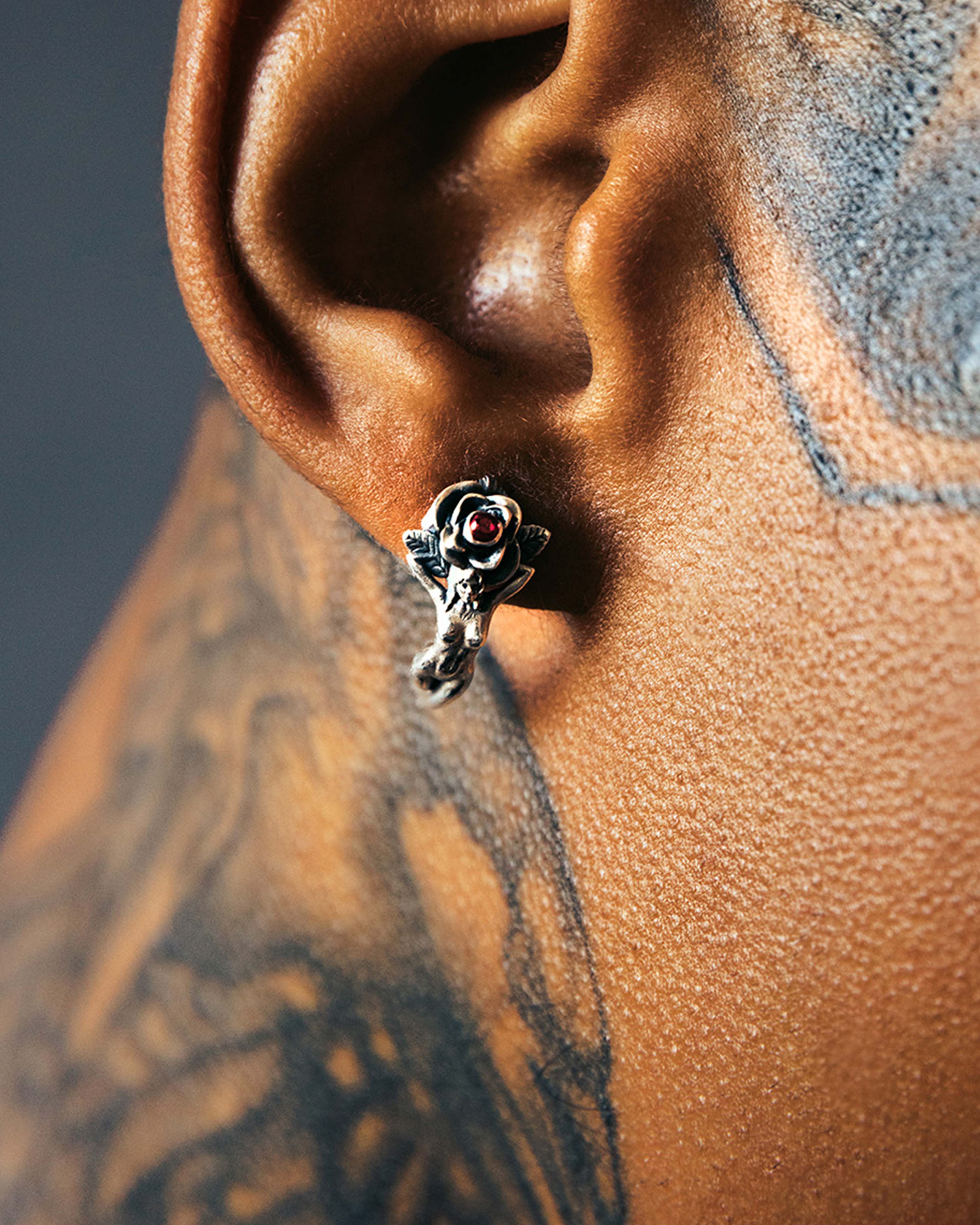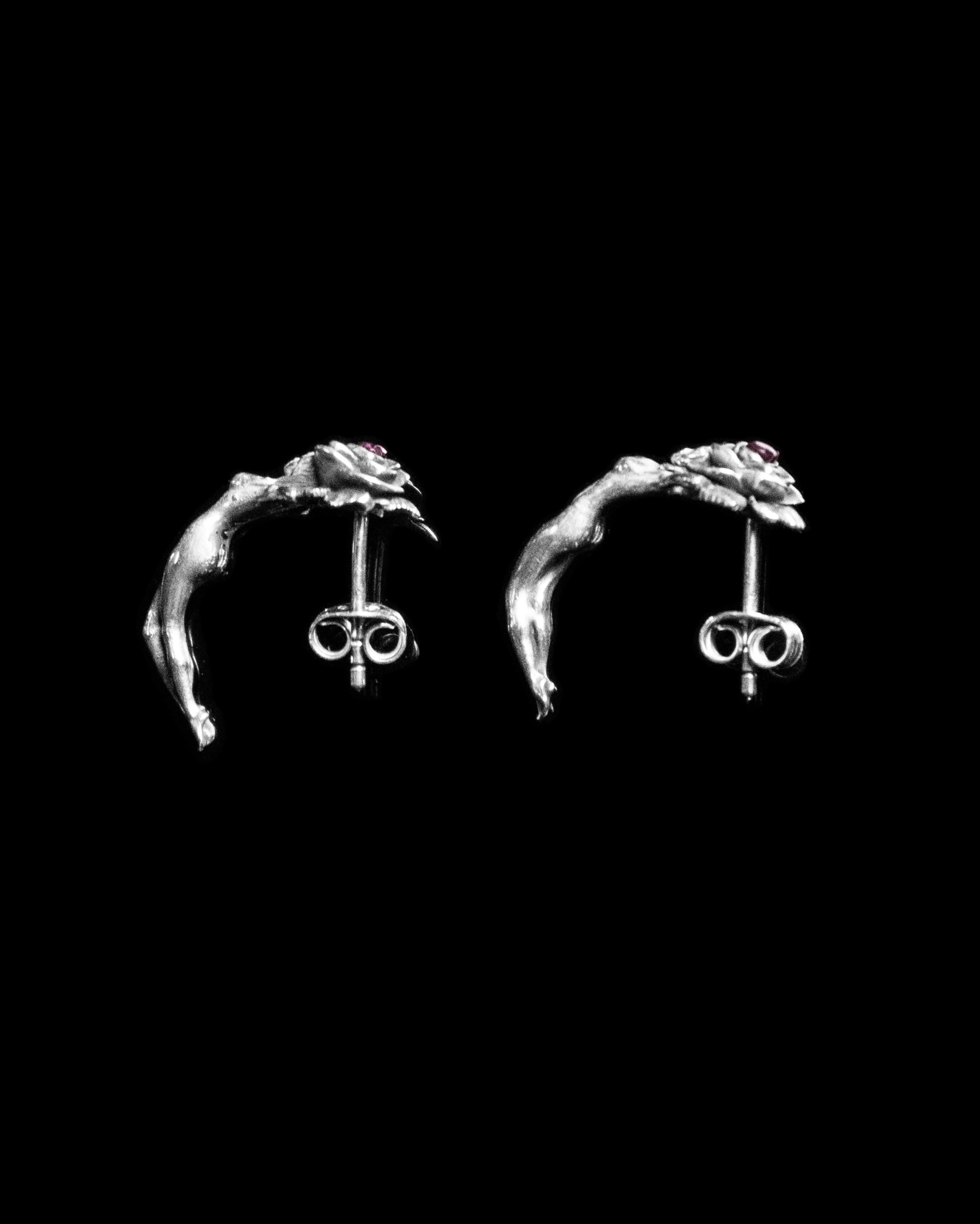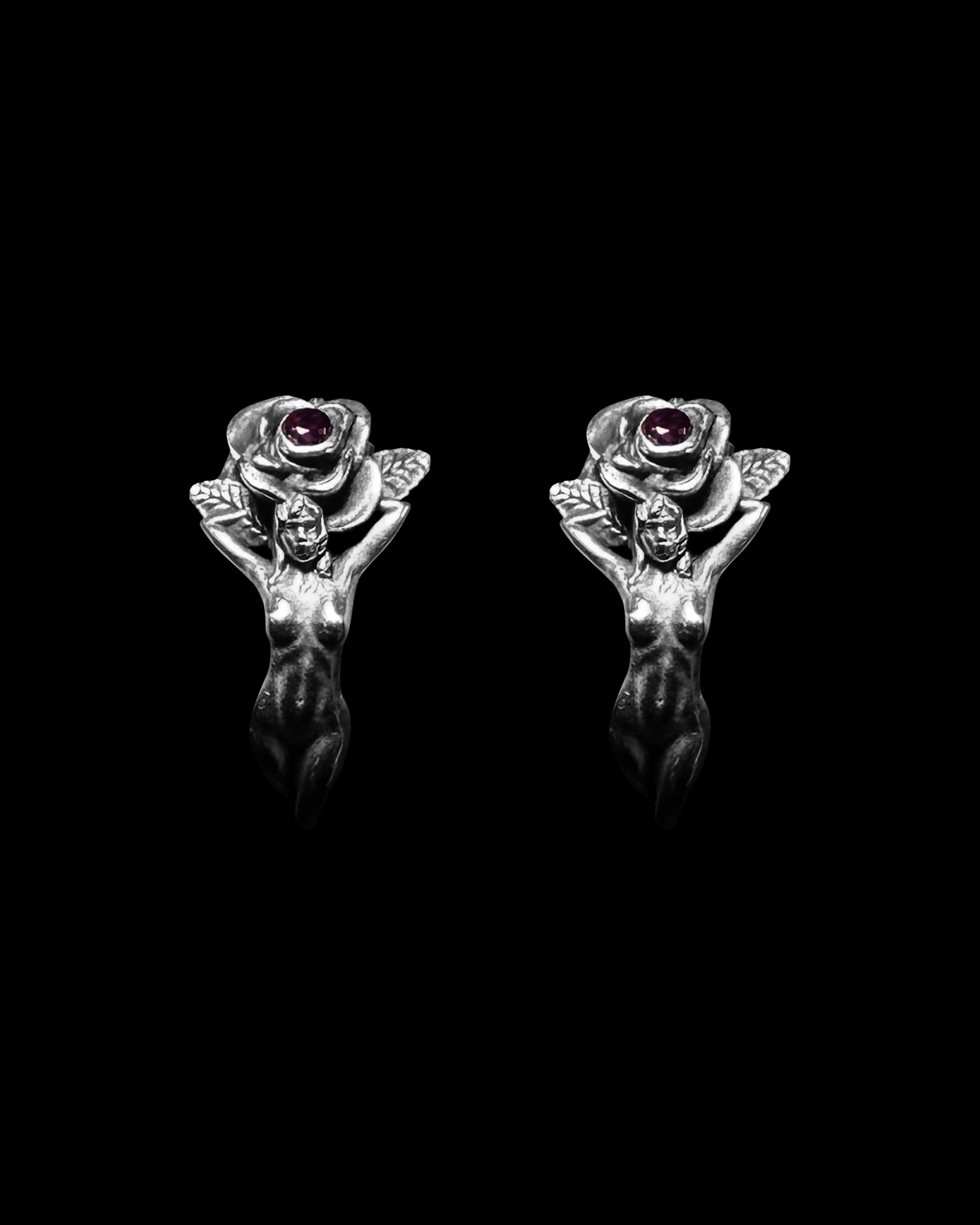 The Grow Into Love Earrings are a stunning display of artistry and symbolism. Crafted from 925 sterling silver, each earring features a finely detailed woman gracefully holding a rose, with a deep ruby stone set at its center. Sold as a set, these earrings showcase exceptional craftsmanship, capturing intricate details that make them truly unique. A statement of beauty and meaning, the Grow Into Love Earrings are a timeless addition to any collection.